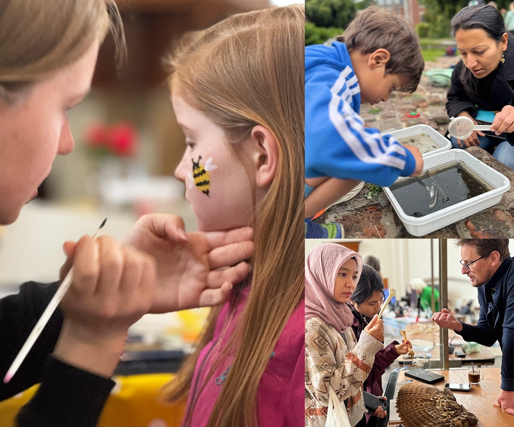 We kozen ervoor om de dag vooral aantrekkelijk te maken voor mensen met kinderen. We organiseerden in 2024 en 2025 een bruisende publieksdag op een zaterdag in mei. In de Grote Kerk, midden tussen de kraampjes van de zaterdagmarkt, konden Wageningers standjes en exposities bezoeken, met microscopen naar kleine beestjes kijken, struinen tussen tweedehands natuurboeken, zaadbommetjes maken en zich als beestje laten schminken. Maar ze konden vooral ook meedoen aan bijvoorbeeld de excursie Vrolijke Fladderaars of een Groensafari in de Stad, om onder leiding van een gids in de stad op zoek te gaan naar zo veel mogelijk soorten: planten, insecten, vogels, waterbeestjes. Of genieten van een klankkunstenaar.